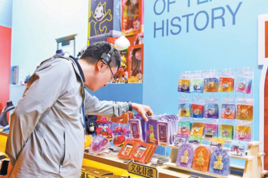 一批“顶流”文创产品亮相精品文创展示区。 实习记者 常一鸣摄