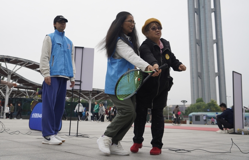 活动现场的市集同样吸引了大量市民驻足参与。本次市集精心规划了体育服务区、互动体验区、文化宣传区等,为市民带来优质服务,全方位满足市民多样化需求,实现体育促消费。在体育服务区,运动医学研究所的专家团队现场坐诊,不仅为市民提供免费的专业体质测试,还针对常见运动损伤开展运动康复义诊,细致解答市民关于运动健康的疑问,用专业服务为市民健康保驾护航。而在互动体验区域,小低高有氧慢跑受到了广大群众的欢迎,新兴运动项目匹克球体验区与 AI 网球互动体验区更是成为全场焦点。充满新鲜感的运动形式与科技赋能的互动模式,让市民们跃跃欲试。文化宣传区的糖人糖画、草编扎染剪影等展现出传统文化的无穷魅力。