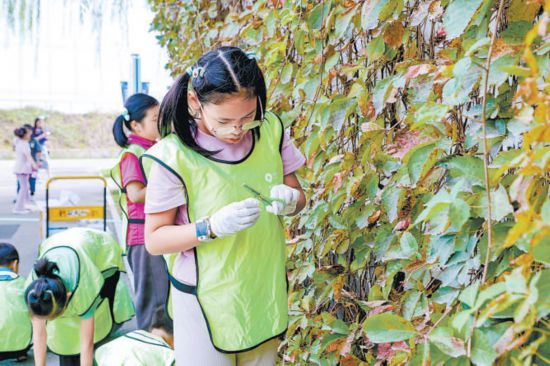 科学教育走出展厅和教室,变得更亲和生动。“不再是看图讲道理,观众就在实景里,学起来更有意思。”王云翔身边是多株高大的树木,以元宝槭和五角槭为主,树叶呈现出不同颜色。“这两种乔木外观相近,容易被搞混。我们会带观众,尤其是小观众近距离观察叶片、树皮、果实等,了解细微区别。这些内容与《义务教育科学课程标准》中的生命科学部分紧密相连,算是孩子们的延伸阅读。”